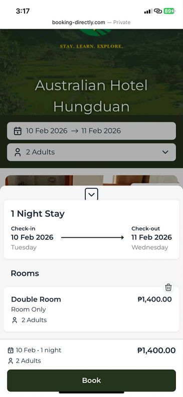 Check your email for your confirmation booking from us - Australian Hotel Hungduan. You pay on your arrival.